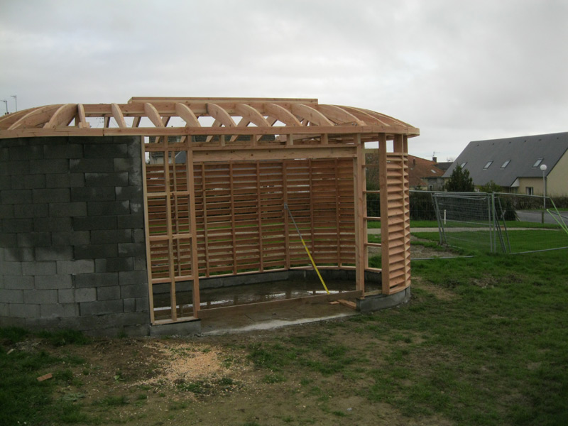 Projet : Construction d’un accueil de jour thérapeutique. Desciption des techniques : Charpente traditionnelle douglas – isolation – murs à ossature bois – bardage panneaux Max extérior.